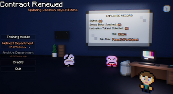 You’re a burnt out employee trapped inside your company’s Motivational Simulation Program™ a cheery HR nightmare that keeps rebooting you into “new departments” to boost morale. Each shift, you’ll collect Motivation Tokens, dodge Stress Blobs, and fight to stay productive before time runs out. Fall, fail, or finish HR will always bring you back.